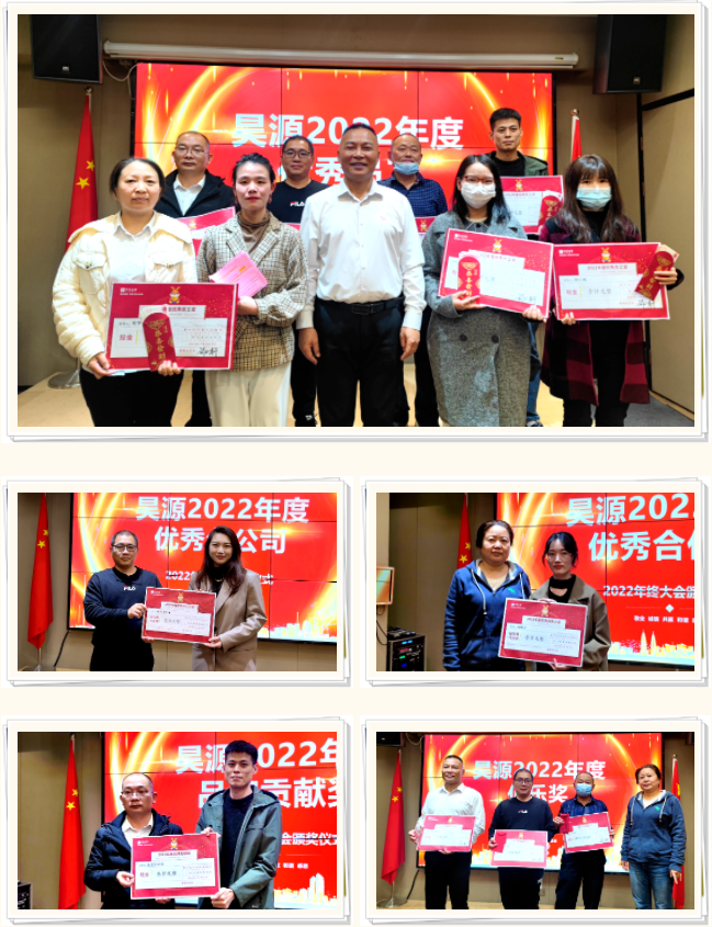 在过去的一年里,有这样一群人,他们用汗水赢得了客户的认可,用勤奋实现了能力的飞跃,用信念铺平了成功之路。优秀分公司、优秀合伙人、品牌贡献奖、伯乐奖、优秀员工,他们都在自己的岗位上勤勤恳恳、默默耕耘,在2022年度里完成考核目标并且表现优异,获得了大家一致认同。